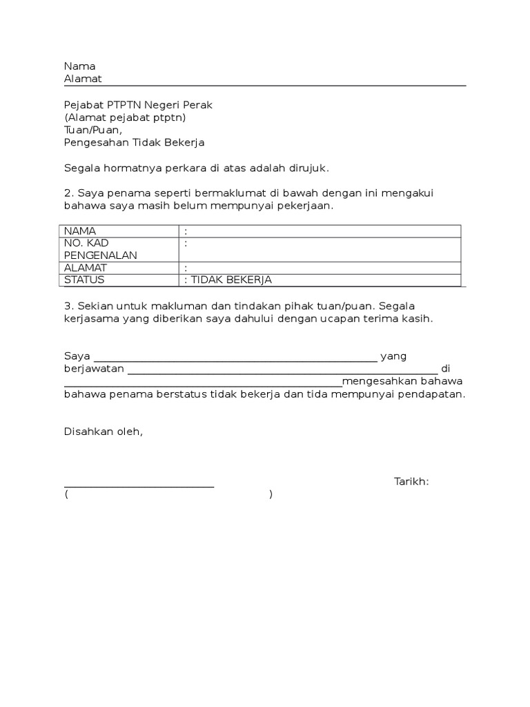 Surat Pengesahan Tidak Bekerja Suri Rumah Pdf