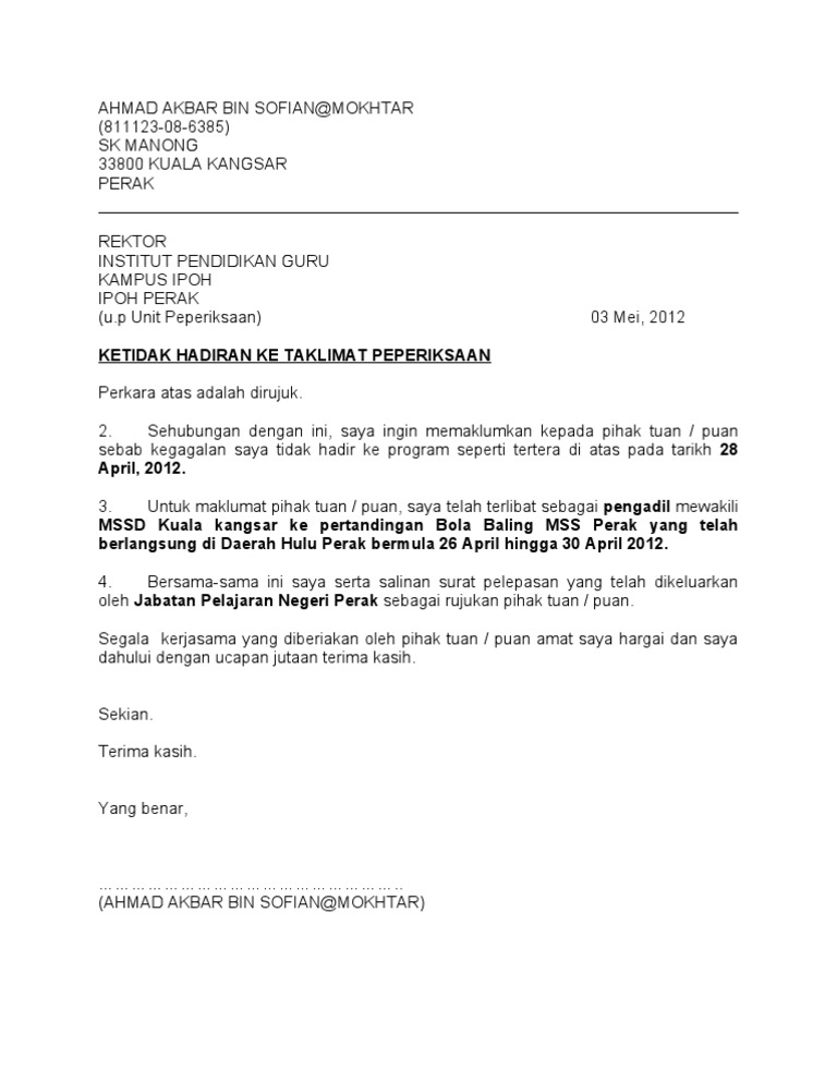 Contoh surat mohon penubuhan kadet remaja sekolah. Surat rasmi tunjuk sebab tidak hadir program telewizyjny surat rasmi tunjuk sebab tidak hadir programmable thermostat surat rasmi tunjuk sebab tidak hadir programme surat rasmi tunjuk sebab tidak hadir program ma surat rasmi tunjuk sebab tidak hadir program pro. Simpan simpan surat tunjuk sebab tidak hadir kursus untuk nanti. Surat tidak hadir ke sekolah kerana sakit demam nama pelajar alamat tarikh.