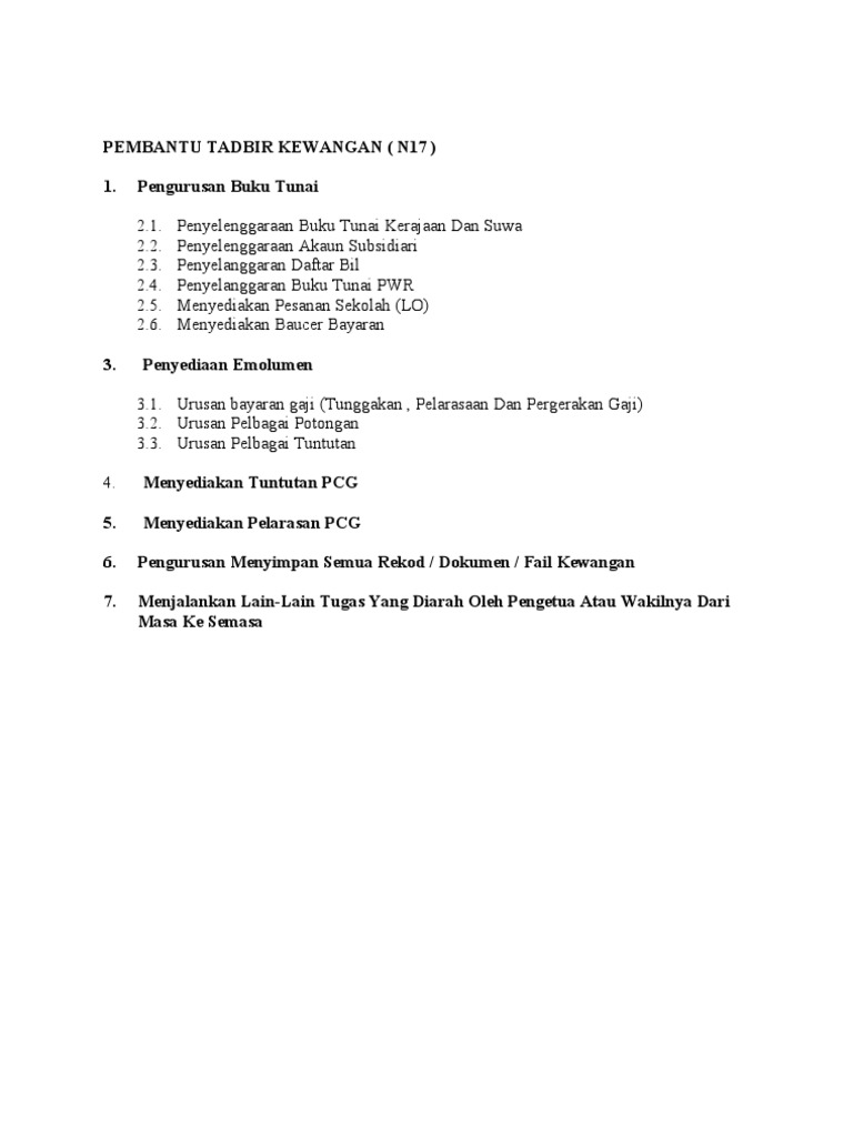 Senarai Tugas Pembantu Tadbir Perkeranian Operasi Gred N19 Index My
