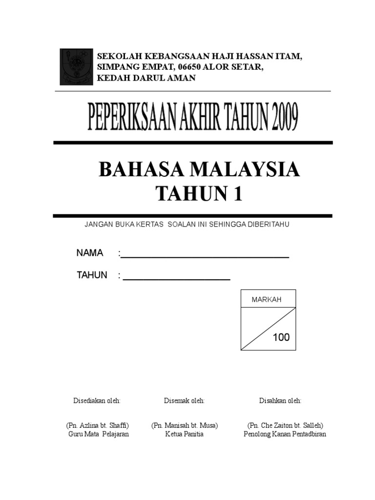Soalan Periksa Bahasa Melayu Tahun 1 Lamaran R