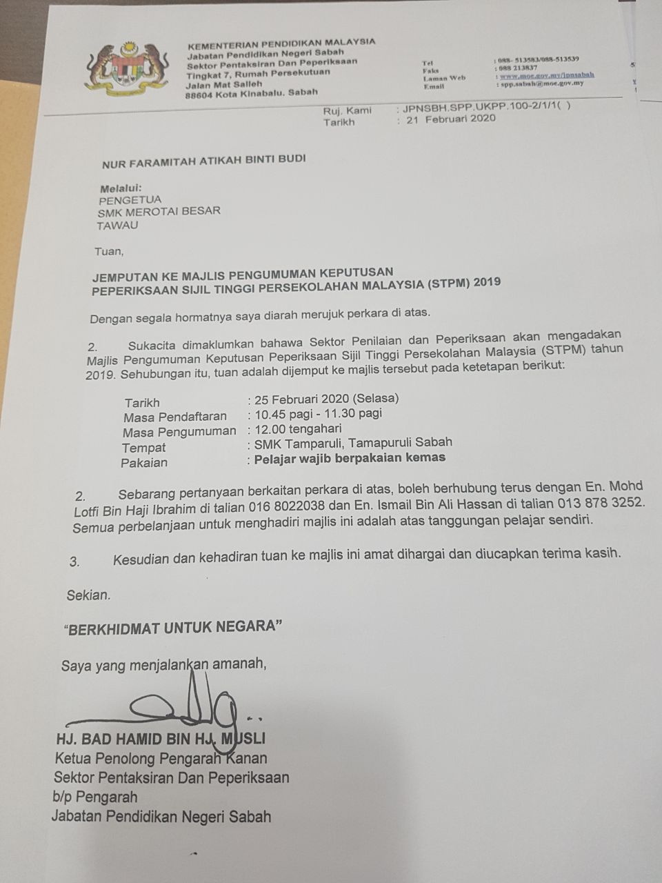 Makluman Daripada Setiausaha Peperiksaan Kolej Tingkatan Enam Kota Kinabalu Facebook