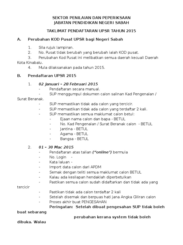 Bahan Taklimat Pendaftaran Upsr 2015 Docx