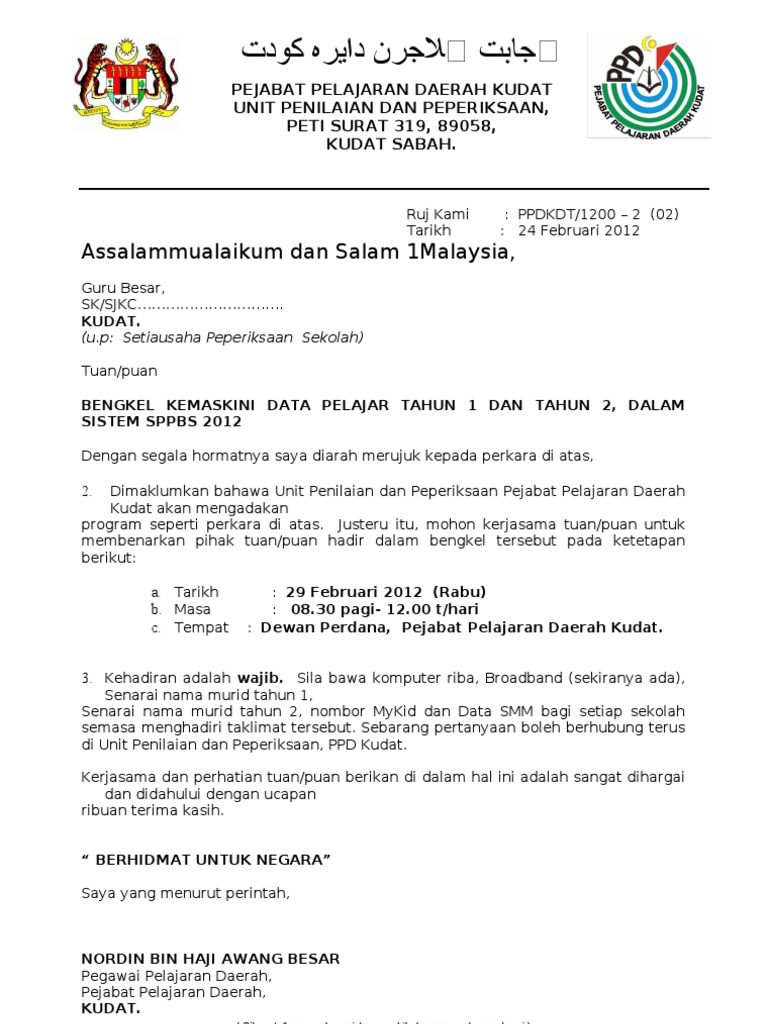 Surat Kemaskini Data Sppbs 2012