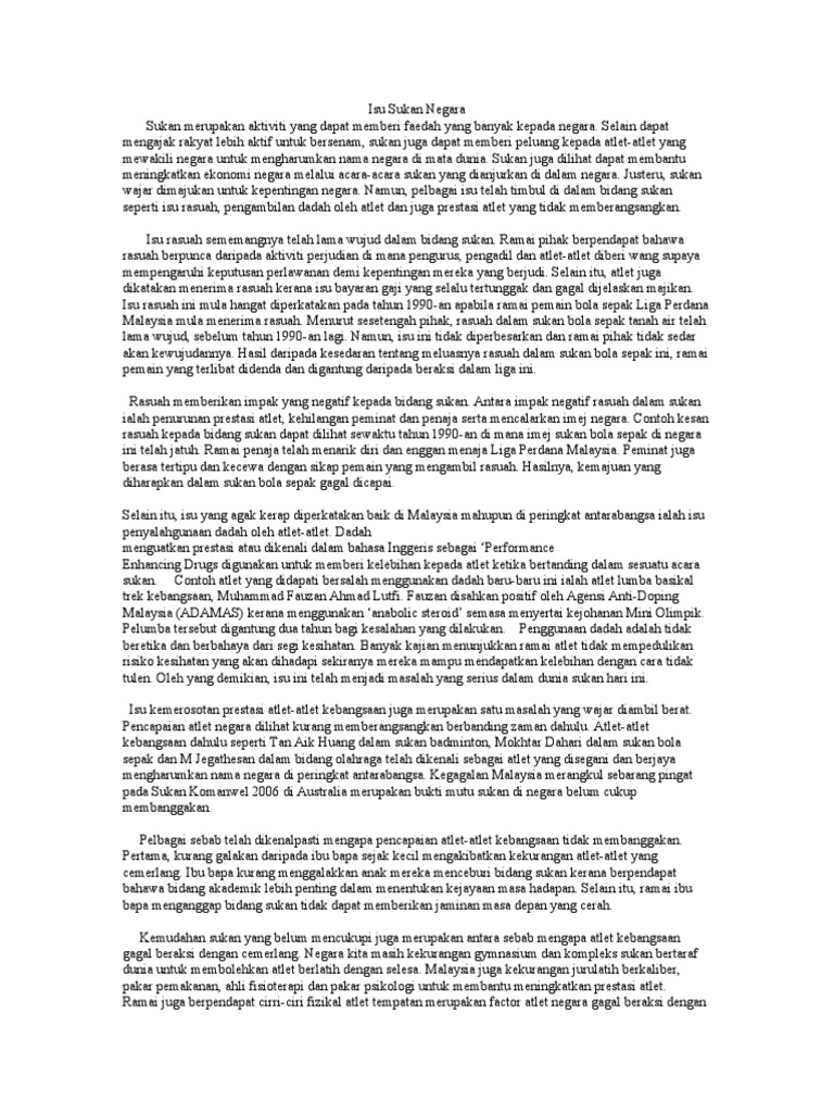 Contoh Karangan Tema Sukan Spm